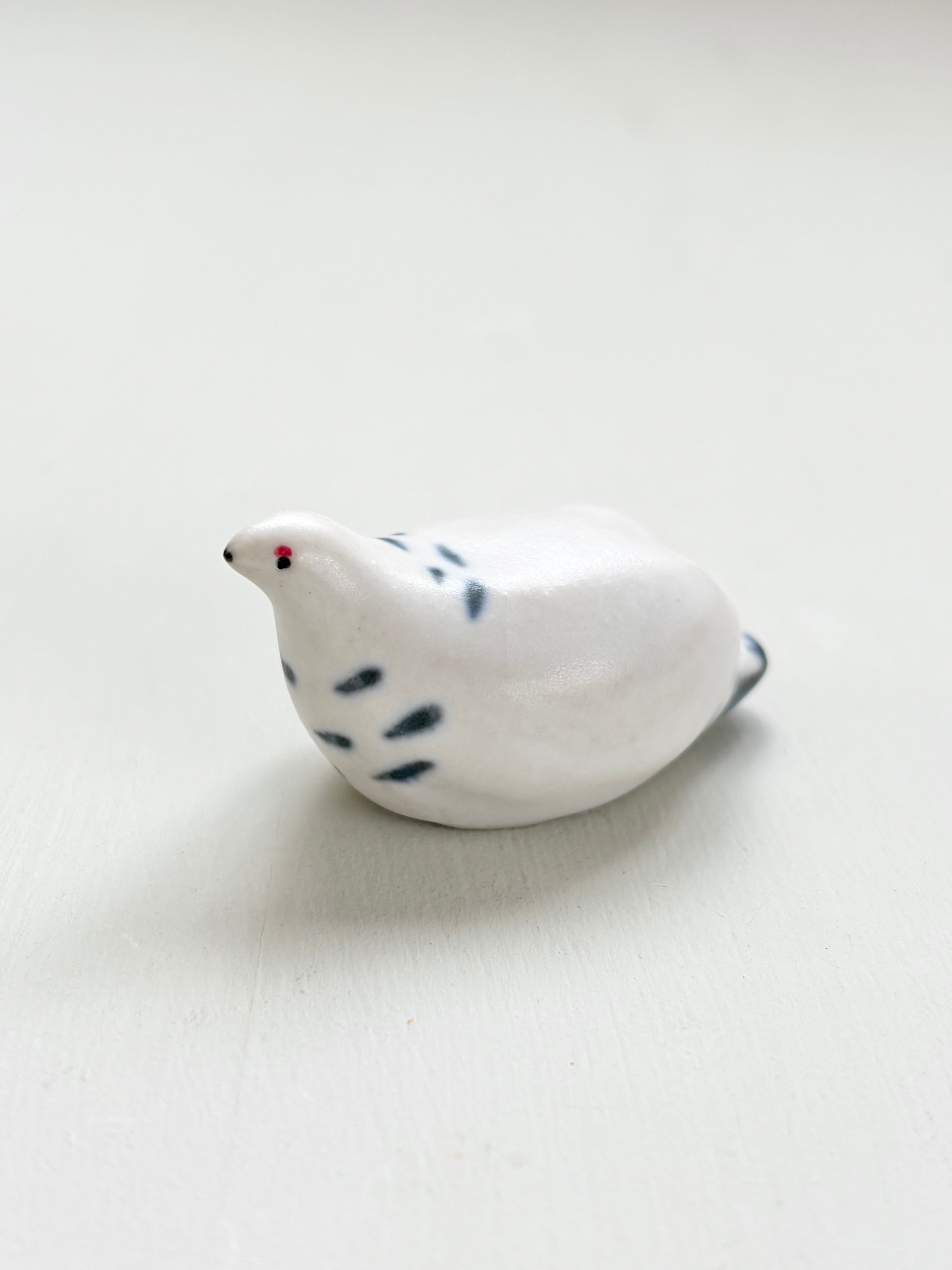 冬羽から夏羽へ衣替え中の、初夏の雷鳥のオスを箸置きにしました。